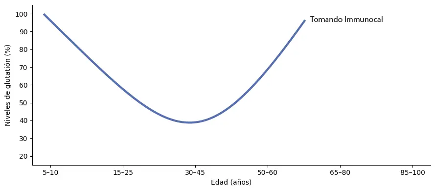 En divulgación científica es habitual representar la evolución del glutatión con gráficos que muestran un descenso progresivo con la edad. Estos gráficos no deben interpretarse como una condena inevitable, sino como una tendencia general observada cuando no se apoya de forma consciente la capacidad del organismo para mantener sus sistemas internos.